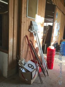 Die Eimer der Hindernisnummern und einige Schilder stehen hier parat…