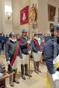 Am Sonntag, 11. Januar fand in der Basilika in Ellwangen die Reitermesse zum Kalten Markt statt. Die Standartenabordnungen beten zu den drei Pferdeheiligen Speusippus, Eleusippus und Meleusippus. Auch von uns war wieder eine Standartenabordnung dabei. An der Standarte Denis Abele, flankiert von Inga Maierhöfer und Renate Berhalter.